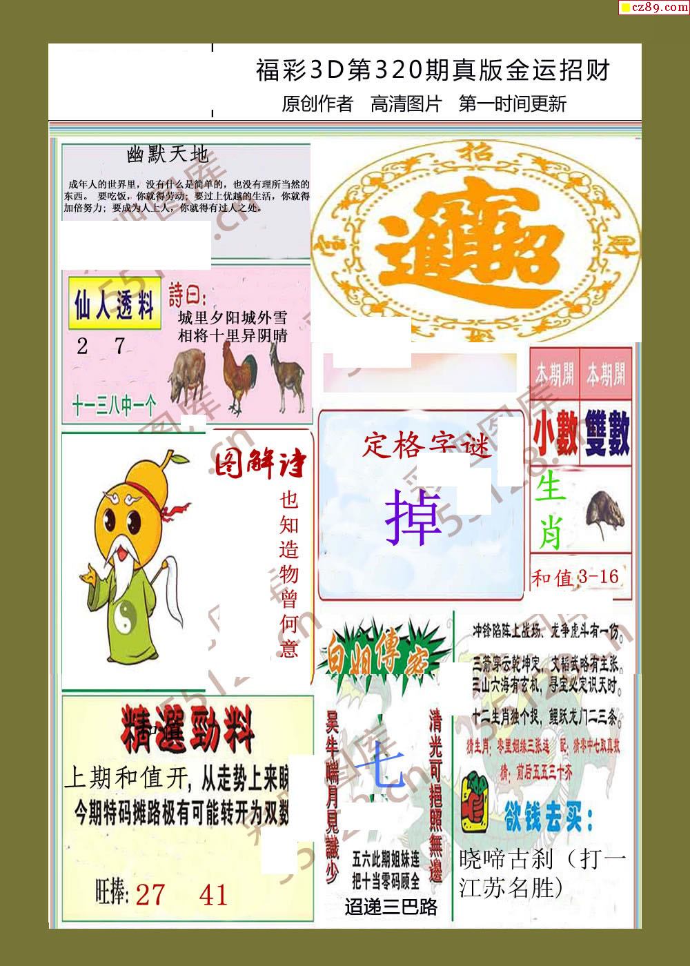 > 25年320期福彩3d金运招财画迷