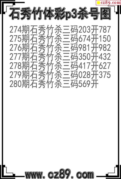 > 25年280期石秀竹体彩p3杀号图