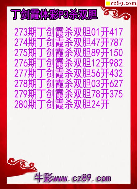 > 25年280期丁剑霞体彩P3杀双胆图