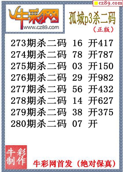 > 孤城杀码280期体彩P3图谜(原创)